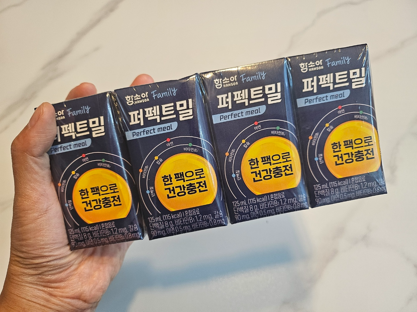 함소아 퍼펙트밀은 16가지 필수 영양소에 19가지 발아곡물, 10종 과일야채의 영양소까지 알차게 들어 있어서 든든한 아침식사대용으로 좋아요. 아침에 밥은 잘 안들어가고 그렇다고 빈속에 찬 우유나 커피부터 먹기 부담스러운데 요거 한 팩 먹고 간단하게 빵이나 고구마 먹으면 딱 좋더라구요!